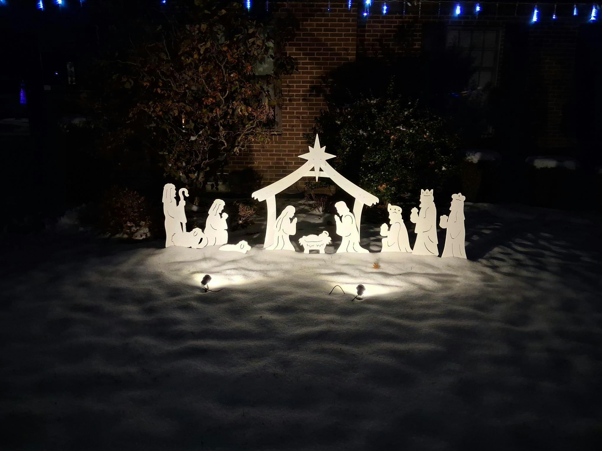 • Large - Nativity is 69" Tall x 72" Wide (Joseph 34" T, Mary 30" T and Manger 16" T), Standing King is 41" Tall x 17" Wide, Standing Shepherd is 40.5" Tall x 22.5" Wide, and both kneeling King and Shepherd are 32" Tall x 24" Wide